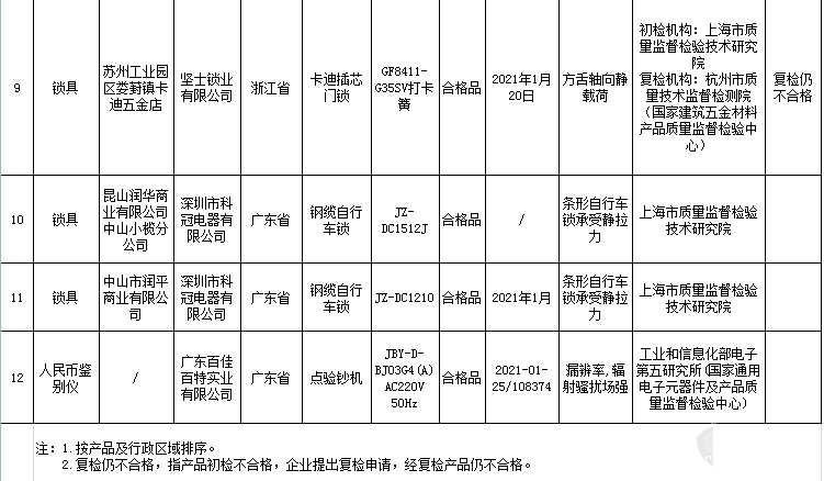 安全帶、安全網、鎖具、人民幣鑒別儀等4種安全防范產品,共發現12批次產品不合格,不合格發現率為5.0%。本次跟蹤抽查到上次不合格企業8家,有1家企業本次抽查仍不合格,7家企業合格。